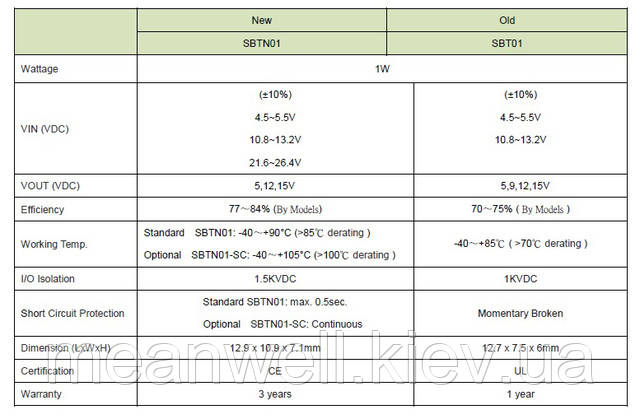SBTN01 - Новий одномодовий DC-DC перетворювач від MEAN WELL