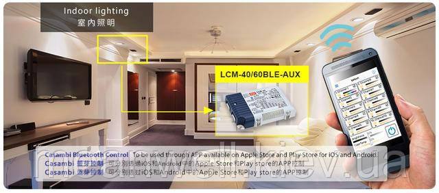 Працюючи у співпраці з європейською компанією Casambi, яка займається розробкою рішень для комірчастої мережі Bluetooth, MEAN WELL інтегрувала ніздрюватий модуль Bluetooth в нашу серію LCM-40 / 60BLE. Обидві моделі можуть використовуватися з будь-якими внутрішніми або комерційними світильниками.