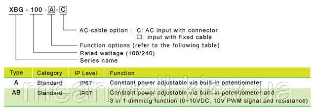 Серія XBG - це світлодіодний драйвер нового покоління з запатентованим механізмом круглого корпусу, призначеним для освітлення і прожекторів. Основними відмінностями порівняно з останнім поколінням серії HBG є конструкція схеми з постійною вихідною потужністю і відповідність останнім правилами безпеки - ізоляція між вихідною і затемняющей лініями, але залишення монтажних отворів в одному місці для простої заміни. Крім того, загальний дизайн також відповідає вимогам SELV (Безпечне наднизька напруга), що може знизити складність конструкції світлоізоляції і гарантувати безпеку користувача.